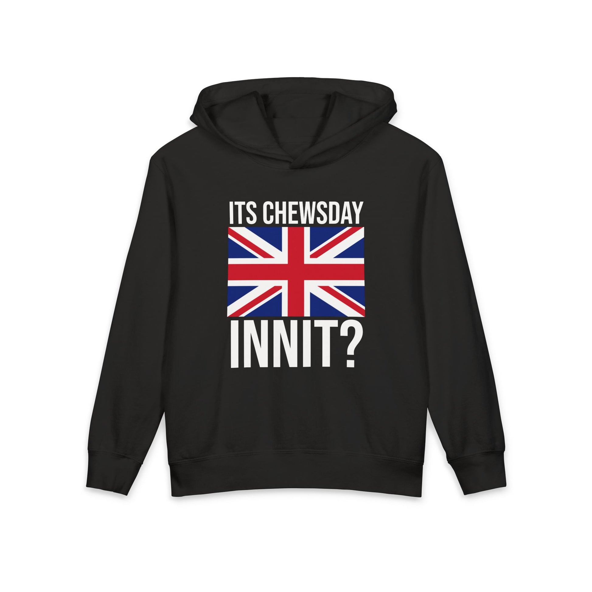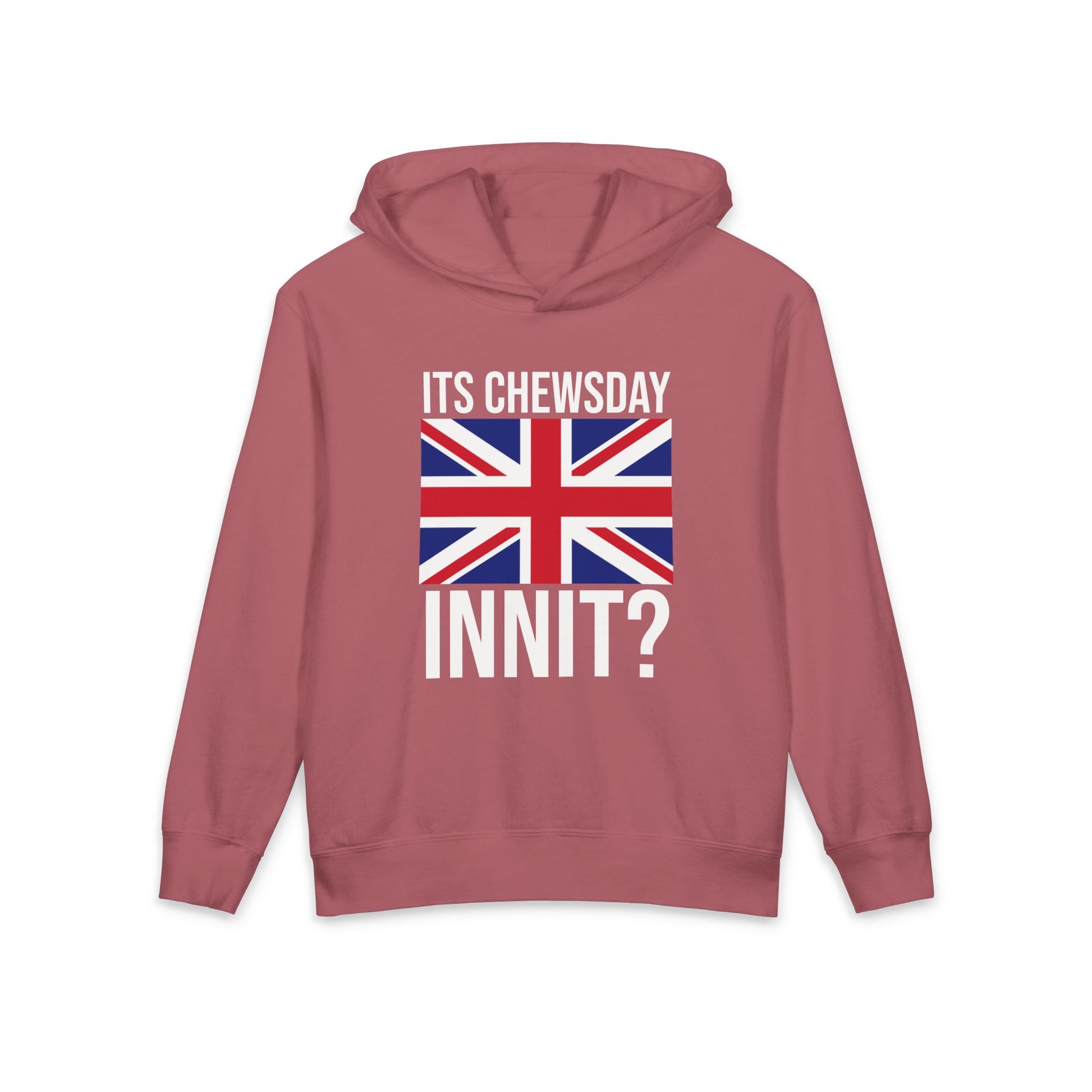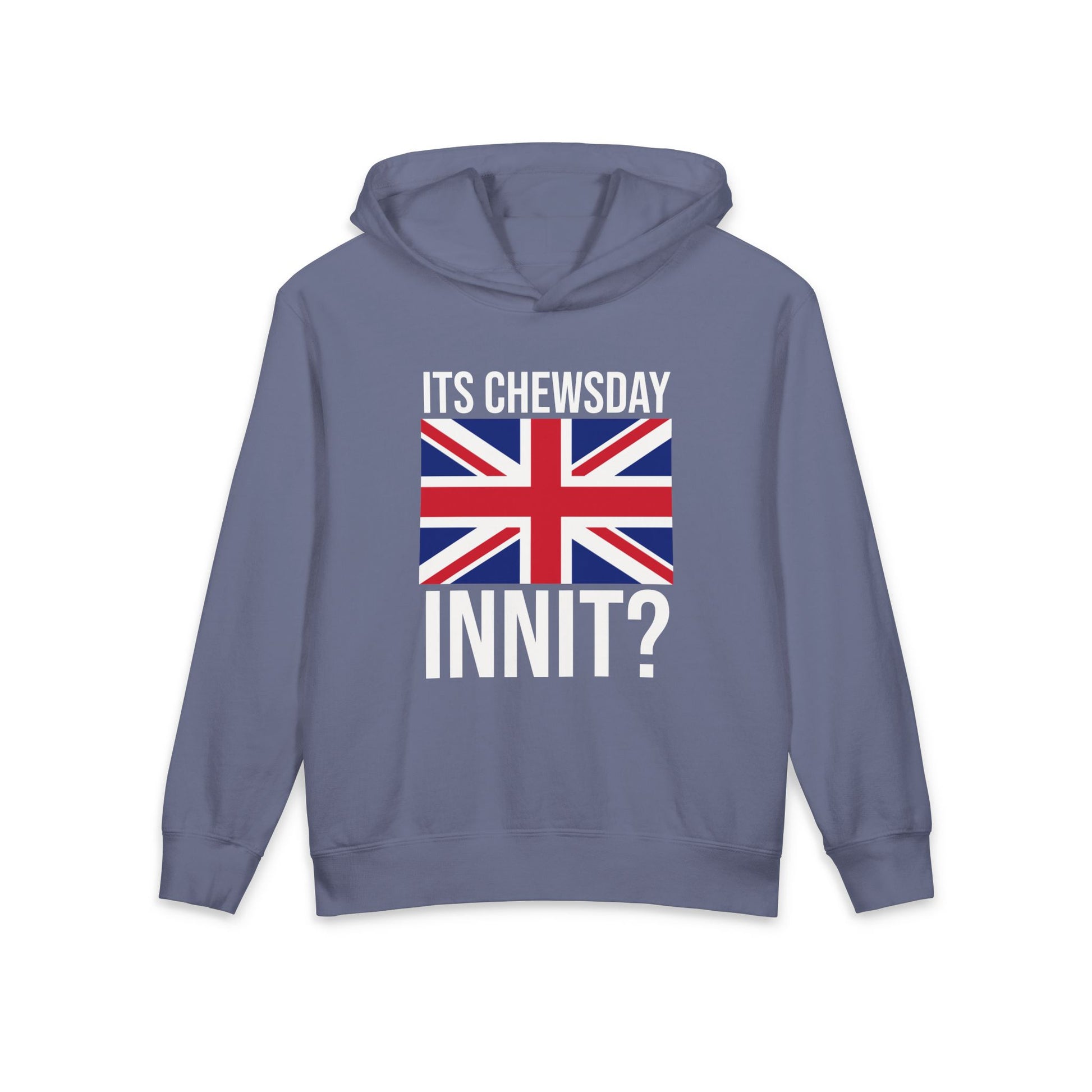 Its Chewsday Innit British Accent Meme Graphic Kids Hooded Sweatshirt Comfort Colors 1467Y Hoodie