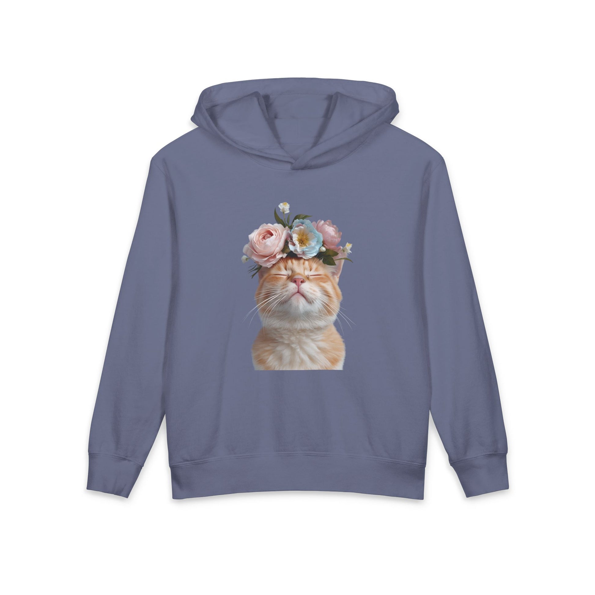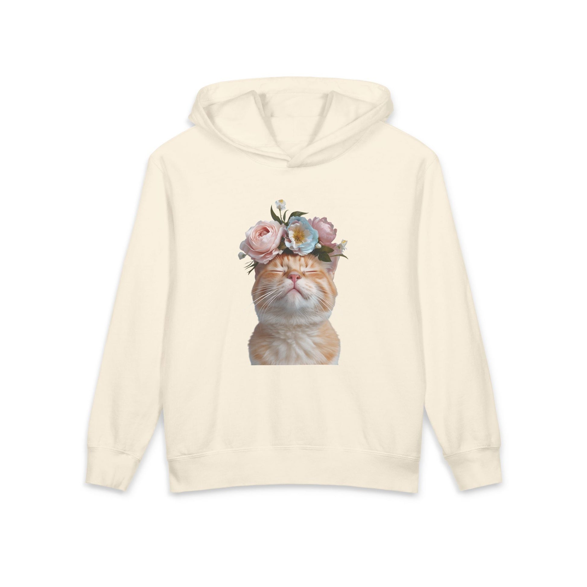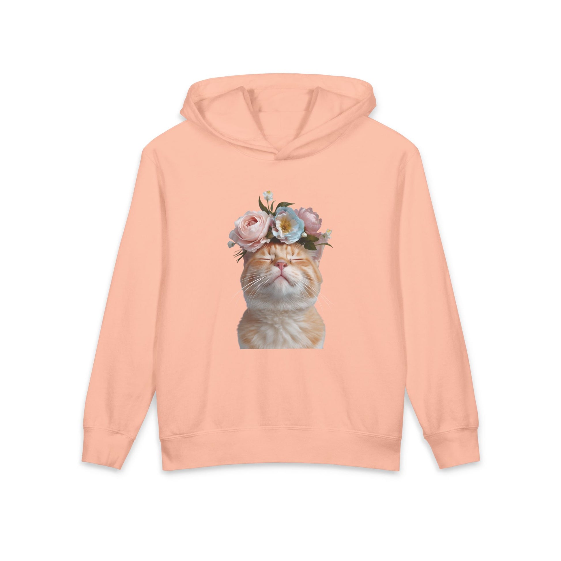 Orange Cat With Flowers on Head Cute Floral Flower Crown Graphic Kids Hooded Sweatshirt Comfort Colors 1467Y Hoodie